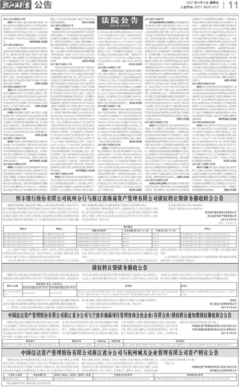 恒丰银行股份有限公司杭州分行与浙江省浙商资产管理有限公司债权转让暨债务催收联合公告