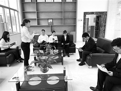 近日,温岭市法院立案庭党员服务队赴箬横镇开展“司法助企”专项服务活动,为企业提供“订单式”普法宣讲,发放并讲解《移动微法院常见问题指南》《起诉状样式手册》等。通讯员 徐雅婷 摄