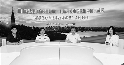 9月29日,由省委政法委、浙法传媒集团共同举办的“深学笃行习近平法治思想”系列访谈第6期开播,特邀杭州市委常委、政法委书记许明,杭州市公安局党委副书记、常务副局长费跃忠,临安区人民法院党组书记、代院长夏强,一起畅谈杭州政法机关和法治工作部门如何把习近平法治思想贯彻落实到法治杭州、平安杭州建设的各方面、全过程,争当深学笃行排头兵;解读法治杭州、平安杭州建设取得高分答卷背后的奥秘,感受杭州之治的速度、力度与温度。