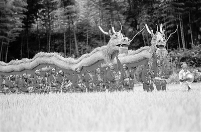 10月13日,淳安县安阳乡昌墅村的田野里,非遗草龙、竹马表演展现美丽图景。据了解,昌墅村很多年轻人都外出打工,有百亩田地都荒着,去年进行了抛荒,今年5月种了100亩水稻,让这些荒地焕发了新的生机。