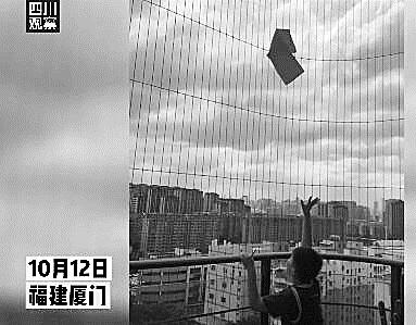 10月12日,福建厦门。台风“圆规”把男孩即将完成的作业,吹到了半空中,挂在了防护网上。孩子妈妈称:“一开始吹上去,感觉还挺好笑的。后来真的被吹走了,孩子也很无奈的,又默默重做了一份。”