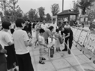 近日,德清县消防救援大队在禹越镇越丰广场夜市开展消防安全宣传活动,组织现场群众体验灭火器、逃生绳、应急锤等消防器材装备,向大家介绍消防安全常识。