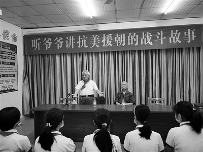今年是中国人民志愿军抗美援朝出国作战71周年。近日,金华市南苑中学启航中队的学生代表走进省第五监狱老干部活动中心,聆听两位老兵爷爷讲述抗美援朝的战斗故事。