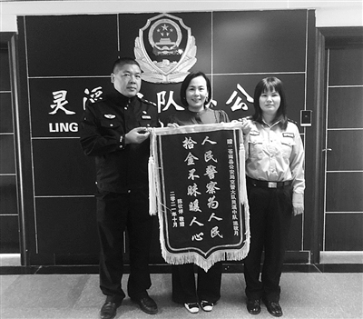 日前,苍南交警灵溪中队辅警温秋月下班路上拾到3万元现金,及时拨打110找到失主。为表示感谢,失主陈女士特地来到灵溪中队送上锦旗。