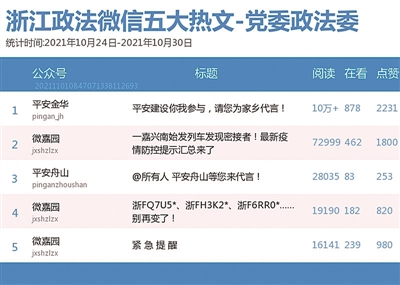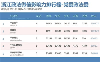 本期政法委榜上,黑马“平安金华”一举夺魁,其推文《平安建设你我参与,请您为家乡代言!》凭借10万+的阅读量,成功拿下热文榜第一。