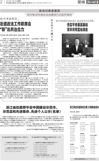 浙江省拟推荐平安中国建设示范市、 示范县和先进集体、先进个人公示(名单)