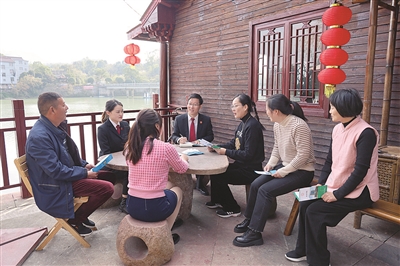 近日,天台县法院法官来到安科新村,为村民们提供涉旅游、民宿等方面的法律咨询服务。通讯员 张梦瑶 摄