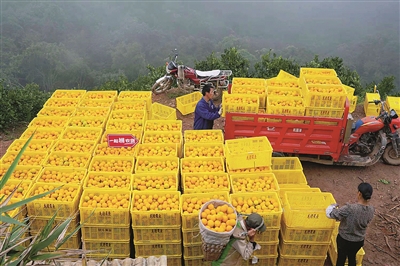 过去,农户卖柑橘,是一篓篓、一担担地卖;如今,借助“拼购+产地直发”的模式,是一车车地销往全国各地。穆功 摄