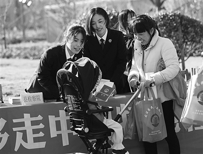 近日,海盐县检察院干警来到法治文化公园宣传宪法。图为干警陈怡心向家长讲解未成年人保护相关法律知识。