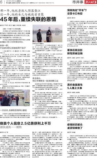 浙江法制报 市井事 00006 45年后,重续失联的恩情 2021-12-23 2 2021年12月23日 星期四