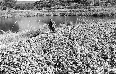 满地晾晒着的亮晶晶的番薯粉丝、地里绿油油的萝卜、波光粼粼的鱼塘……老林领着大家参观他的“希望”,他的话很少,但脸上始终绽放着笑容。