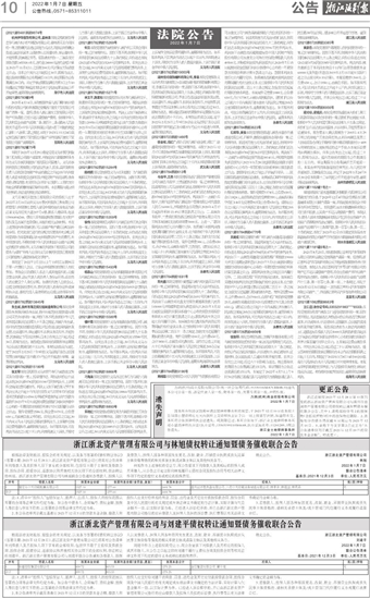 浙江浙北资产管理有限公司与刘建平债权转让通知暨债务催收联合公告
