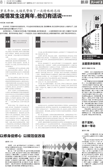 曾有人问我:“你一直给别人做心理辅导,自己呢?有没有撑不下去的时候?”说实话,我也有难的时候。我和老婆都是独生子女,要照顾双方父母、太公太婆以及两个学龄期的孩子。有段时间,我们俩都忙于工作,没时间接送,只能让上幼儿园的儿子在家学习了一个学期。可要说撑不下去的时候,似乎没有。因为我最关注的是如何解决一个又一个困难,把工作做好。我想,战友们也都是这样的。做好工作的责任感、要对得起身上警服的使命感给了我们巨大的力量,而这份力量支撑着我们一次次迎来春暖花开。