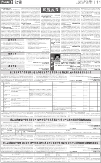 浙江省浙商资产管理有限公司 金华市金东区信通小额贷款股份有限公司 债权转让通知暨债务催收联合公告