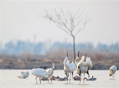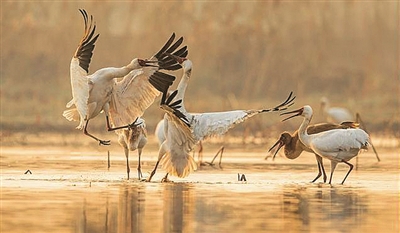 “白鹤生性机警,在一个地方被惊扰过,就再也不会去。”北京林业大学鹤类保护专家郭玉民介绍,从1980年科研人员在鄱阳湖最早发现白鹤越冬种群,数量不断增加,目前湖区已监测到白鹤4200余只,占全球总量的98%以上。