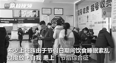 春节假期,不少人因过度放飞自我,患上“节后综合征”。医生表示,“节后综合征”主要表现为头脑昏昏沉沉、工作效率低,想要快速改善需做到:1、不熬夜,保证充足睡眠;2、清淡饮食,促进脾胃功能恢复;3、工作上制定合理计划;4、适当做些有氧运动。