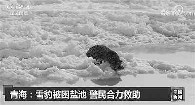雪豹喝盐池卤水无力行走被救下
