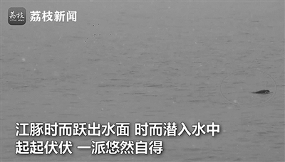 由于南京大雪,长江临时停航,难得平静的江面出现江豚戏雪的场景。江豚时而跃出水面,时而潜入水中,起起伏伏,一派悠然自得的样子。