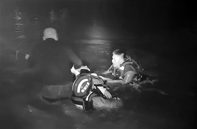 “当时情况非常危急。”消防员回忆,当时,车子已漂到离岸约30米的位置,水面上只看到2个红红的车灯,指挥员立即安排2名水性较好的消防员做好安全措施后游向车辆。