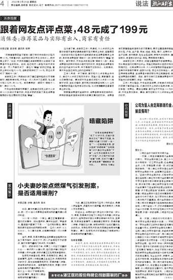 消保委:推荐菜品与实际有出入,商家有责任