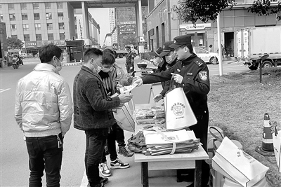 连日来,台州椒江警方结合“我为群众办实事”“三服务”及“三能”主题教育实践活动等,组织民警走访倾听群众意见和建议、收集违法犯罪案件线索等。图为下陈派出所民警走进企业“摆摊”宣传安全生产知识。