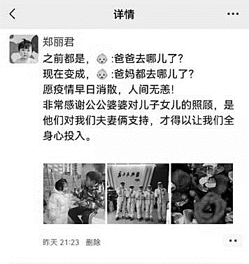 本报讯 “儿子有围棋课,记得按时接送”“给女儿泡奶粉,水温别太高”“早晚温差大,让老妈注意身体”……这是近日,一对医警夫妻的微信留言日常。