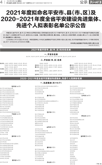 2021年度拟命名平安市、县(市、区)及 2020-2021年度全省平安建设先进集体、 先进个人拟表彰名单公示公告