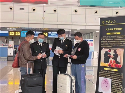 | 义乌海关工作人员在机场航站楼进行国门安全宣传教育 |
