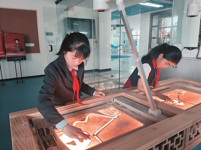 在沙画教室里,学生吴欣妍正在老师斯丹宁的指导下,绘制沙画《中国一点都不能少》。小吴说,通过地图沙画,不仅认识到祖国的疆域辽阔,更在老师指导下了解了邻近国家的情况。“守卫国土安全,人人有责。”