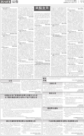 浙江汇澜投资管理有限公司清算组公告