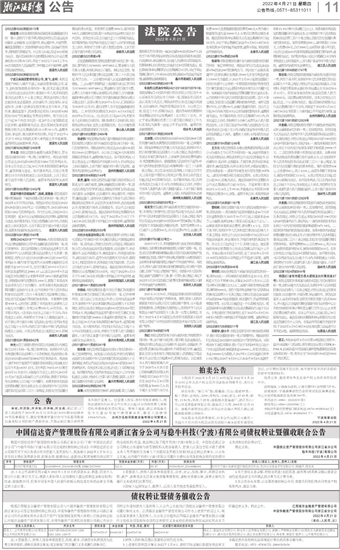 中国信达资产管理股份有限公司浙江省分公司与稳牛科技(宁波)有限公司债权转让暨催收联合公告