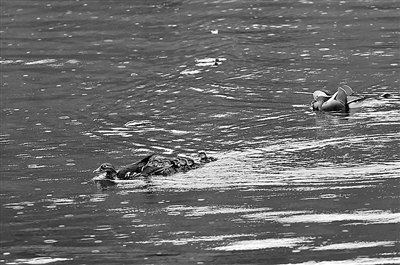 志愿者们还发现一个惊喜,这窝小鸳鸯的妈妈脚上有环志(能辨识身份的脚环),编号上有“770”的字样,“编号看不太清,很有可能是去年的第二窝小鸳鸯‘强强’的妈妈,她去年一共生了15只呢。”陆建利说。