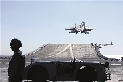 夜幕中,战机航行灯组成的闪闪“星”光由远及近,战机开始下滑,LSO通过无线电话筒对飞行员发出修正指令。经过几年的探索,他们已经形成了符合中国语言习惯的着舰指挥口令体系。
