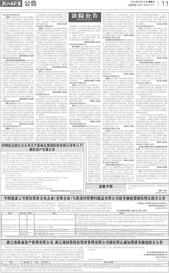 中国信达浙江分公司关于富丽达集团控股有限公司等21户 债权资产处置公告