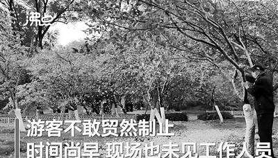 大爷狂摇樱花树 园方:谢绝其入园