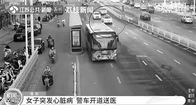 近日,江苏淮安一女子突发心脏病,急需送往医院抢救,正值交通高峰期,女子丈夫向路边交警求助。交警一路警车开道,连闯4个红灯,终于在20分钟内将女子及时送医。因抢救及时,女子目前已脱离生命危险。