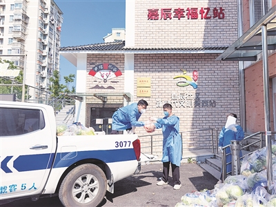 从田头到餐桌,打通物资供应“最后一公里”,社区工作人员、微网格员、志愿者、党员楼道长等纷纷当起了“跑腿员”“快递员”。“生活物资包已送达,请各位工作人员前来取货。”5月6日下午2时多,嘉善县魏塘街道嘉辰花苑小区一期卡点上,一卡车800份生活物资包刚刚送达,魏塘街道驻点工作人员张启超一边在工作群里发出信息,一边与社区工作人员一起清点卸货。没两分钟,负责小区36幢1单元的工作人员张栋梁便一溜小跑出现在了卡点上。签名领物资,再派送给自家楼道里的住户们,一户一份,三日一次,连日来,张栋梁早已习惯了这样的“接力”。