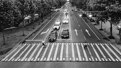 5月23日傍晚,金华开发区和悦未来社区街头,“智慧斑马线”发出光亮提醒司机与行人注意安全。