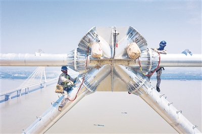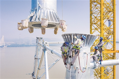 在安徽省池州市贵池区的长江边,有一群电力“蜘蛛人”,他们每天攀爬、行走在二百多米高的跨越电塔上,奋战在白鹤滩—浙江±800千伏特高压直流输电工程池州长江大跨越施工现场,确保国家重点工程进度。