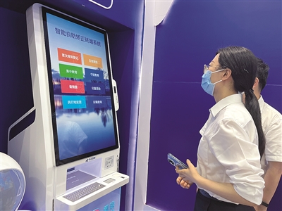 在“数字司法”展馆,不仅可以通过VR“走进”监狱,还可以远程连线律师咨询法律问题。一位来自检察系统的参观人员驻足在智慧法律服务自助机前,查看“寻找律师”“法律文书”“普法学法”等栏目,又尝试拨打了“律师视频解答”,不到1分钟,便连线上了律师。“该自助机提供普法学法、法律咨询、法律文书下载等一站式法律服务,非常实用。”省司法厅公共法律服务处的王铎铮解释。