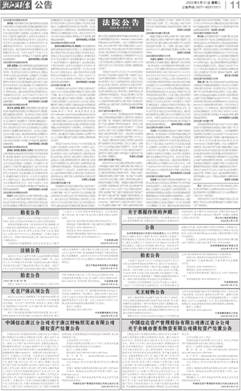 受理征询或异议有效期:15个工作日,如对本次处置有任何疑问或异议请与浙江分公司联系。