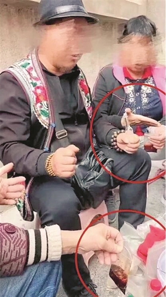 经初步侦查,诈骗团伙内部又分为若干小团伙,以2至4人为一组,每个小团伙都有女性,负责望风、揽客,其他人则身着苗族服饰冒充“苗医”售药。