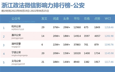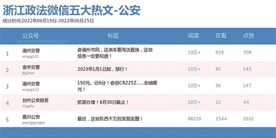 本期公安榜的冠军依旧是“杭州公安”。而热文第一被“温州交警”的《@温州市民,这类车要淘汰置换,这些信息一定要知道!》以10万+阅读数拿下。根据《浙江省电动自行车管理条例》规定,备案非标电动自行车自备案之日起使用期满七年的,不得上道路行驶;使用期未满七年的,自2023年1月1日起不得上道路行驶。该文为市民做好了详细攻略,让他们参与提前淘汰置换活动,集成各方优惠。