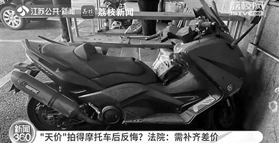160多万元拍得摩托车后反悔? 法院:需补齐差价