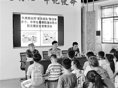 近日,衢州市公安局衢江分局大洲派出所联合“老兵战队”志愿者到各乡村文化礼堂,举办中小学生暑期安全知识课堂。
