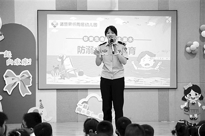 7月13日上午,诸暨陶朱派出所联合红十字救援队走进陶居幼儿园,为“小候鸟”们开展防溺水安全宣传。民警与救援队队员跟孩子积极互动,示范了一些简单的急救方法,告诫小朋友不要私自下水,一旦遇到溺水情况时应大声呼救、拨打求救电话等。