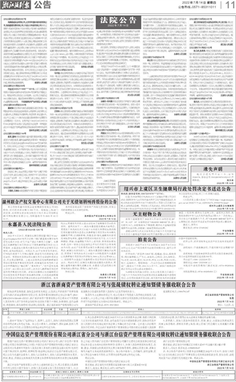 中国信达资产管理股份有限公司浙江省分公司与浙江台信资产管理有限公司债权转让通知暨债务催收联合公告