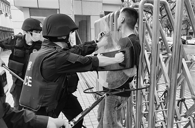 连日来,台州市公安局椒江区分局巡特警大队定期不定期组织民辅警开展应急处置突发事件演练,确保关键时刻能够拉得出、打得响。图为演练现场。