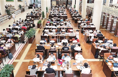 7月17日,杭城持续高温,杭州图书馆内座无虚席。酷暑天,不少市民选择来到图书馆,在凉爽的环境中提高学习效率,在书香里寻觅清凉,避暑学习两不误。魏志阳 李镜媛 摄