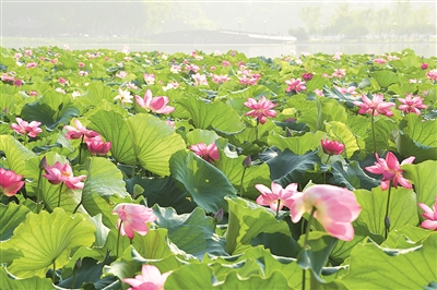 7月27日,进入中伏的杭州,西湖荷花美不胜收,一派“接天莲叶无穷碧,映日荷花别样红”的景象。